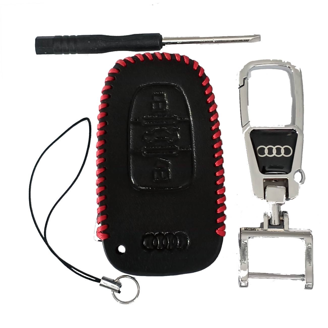 Чехол кожаный смарт ключа AUDI 3 кнопки с карабином LC1250