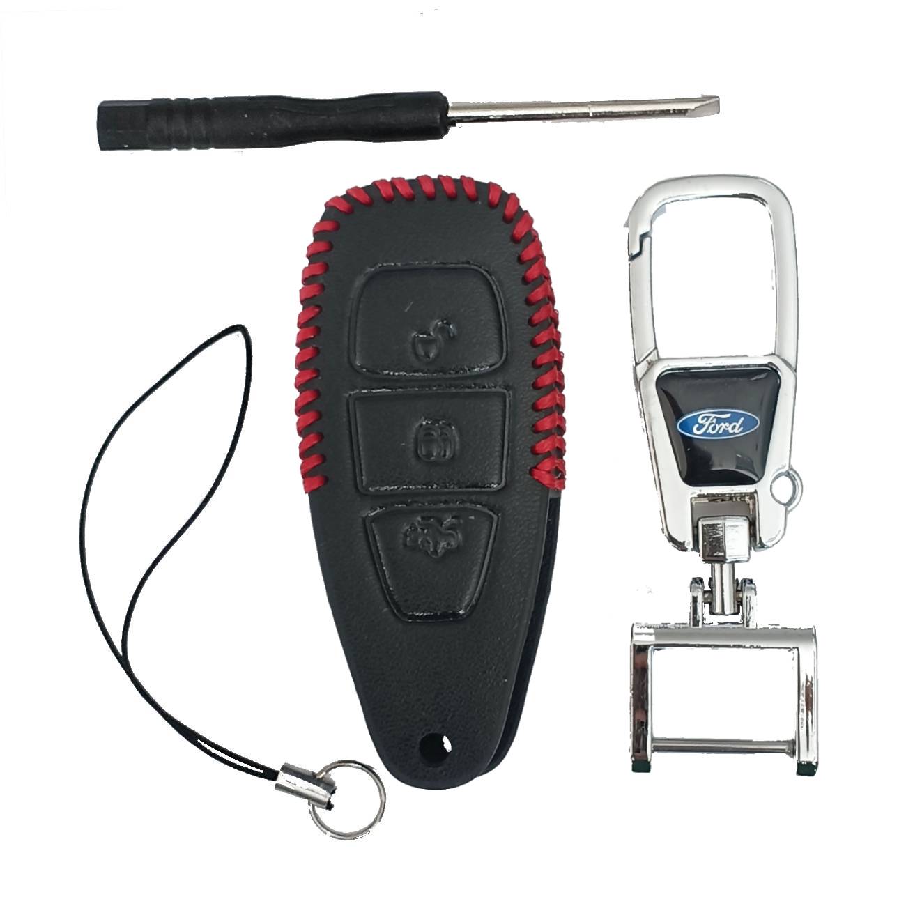 Чехол кожаный смарт ключа FORD 3 кнопки с карабином