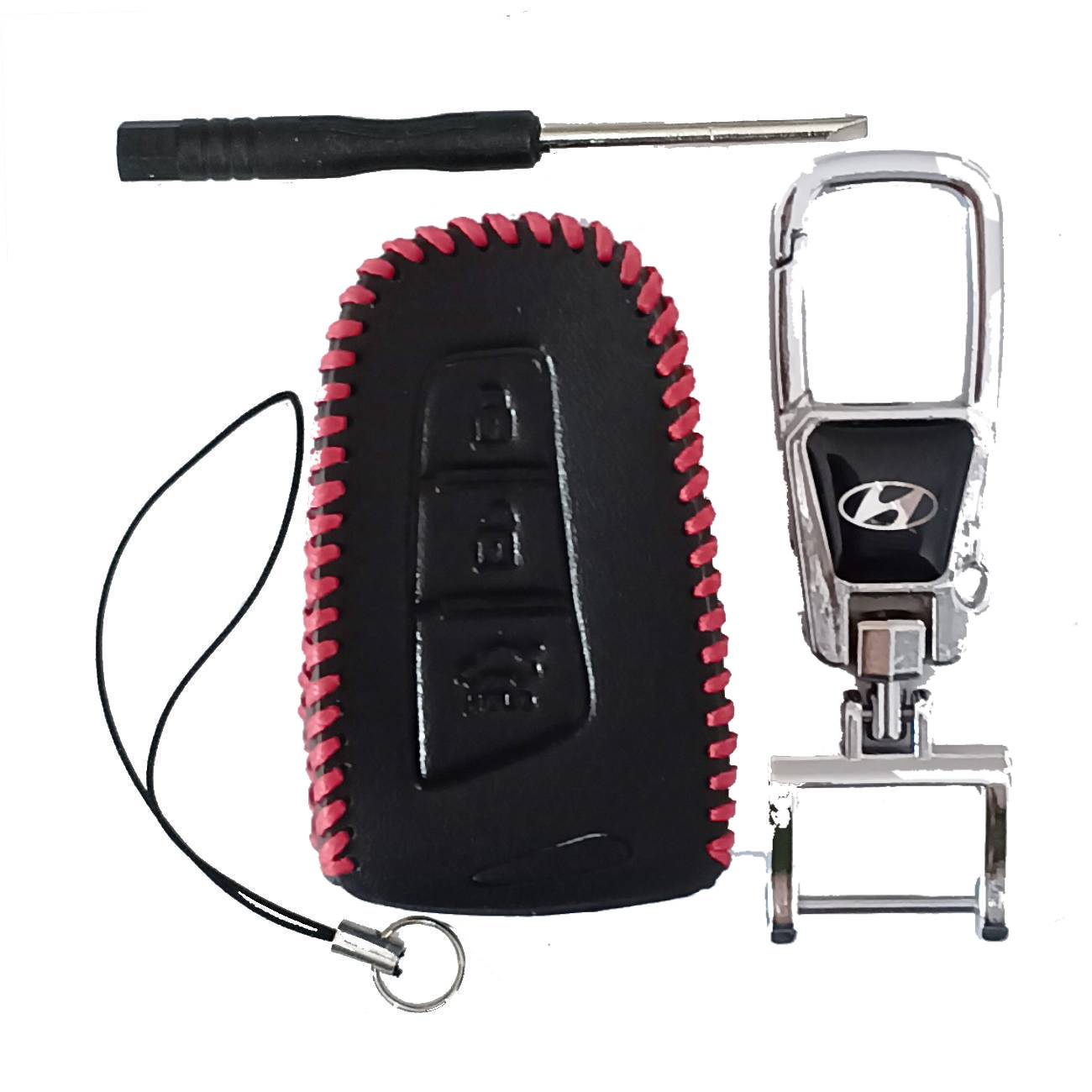 Чехол кожаный смарт ключа HYUNDAI 3 кнопки с карабином LC3265
