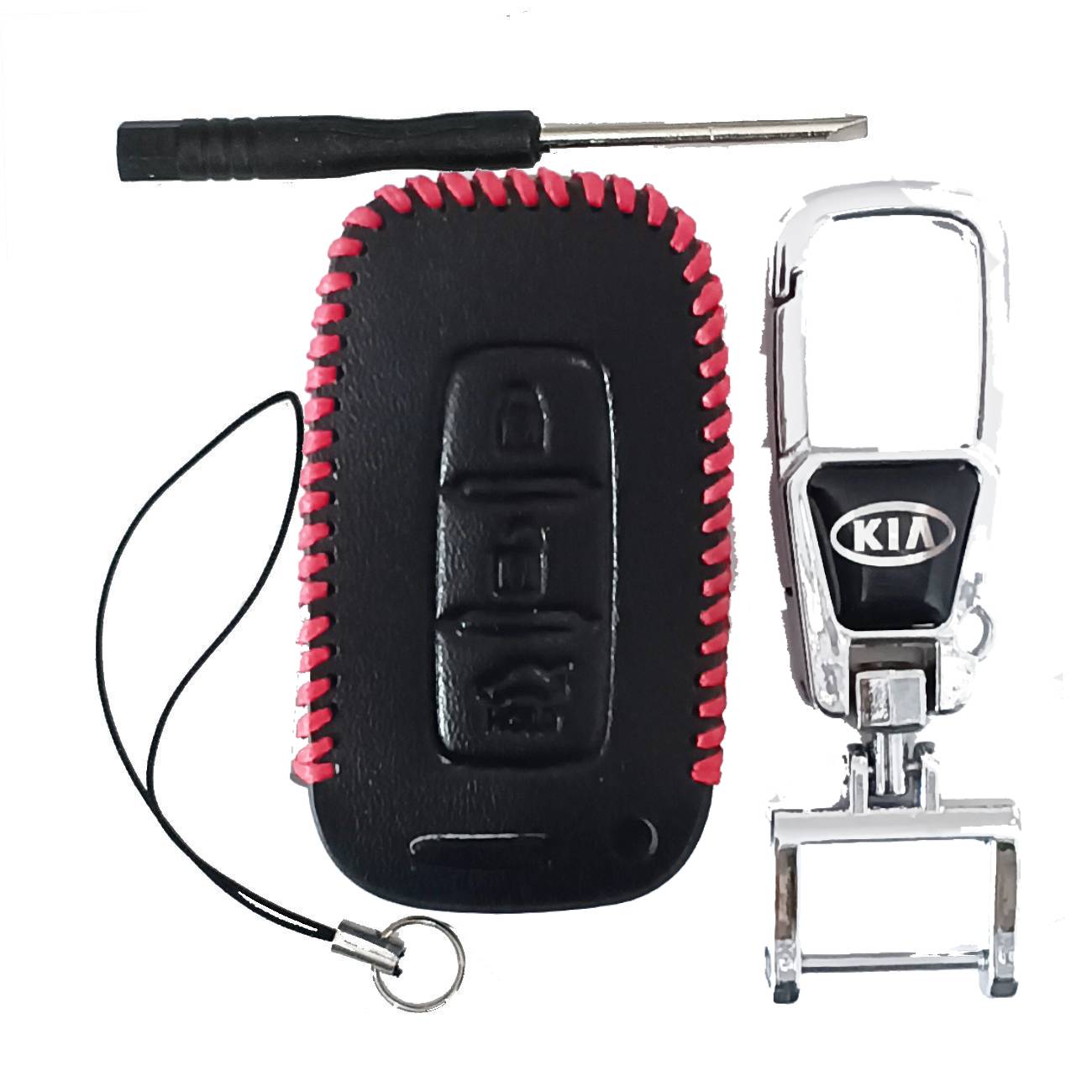 Чехол кожаный смарт ключа KIA 3 кнопки с карабином LC0003