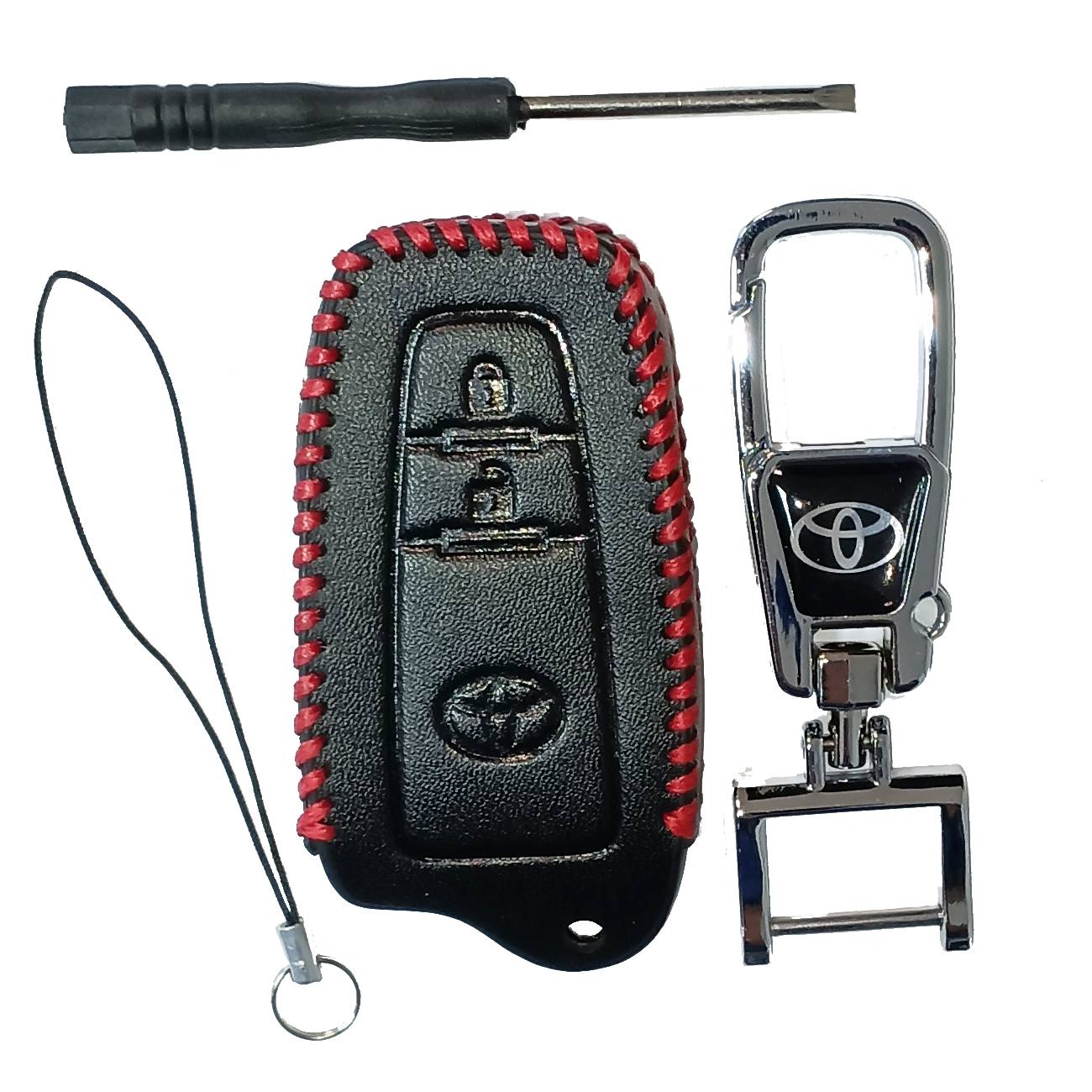 Чехол кожаный смарт ключа TOYOTA 2 кнопки с карабином LC1592