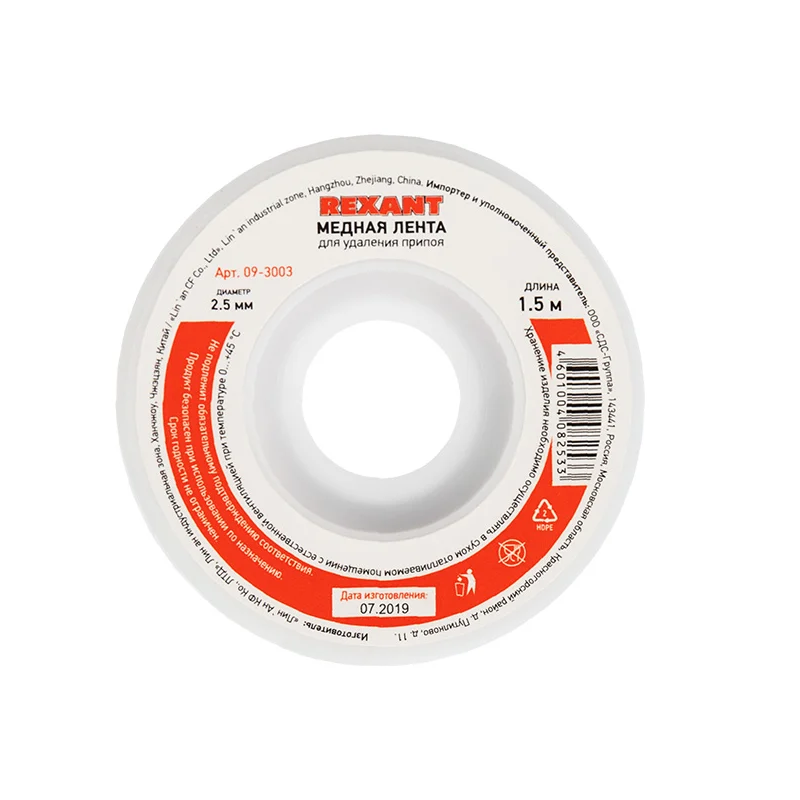 Лента медная для удаления припоя (оплётка) 2.5 мм 1.5 м REXANT 09-3003