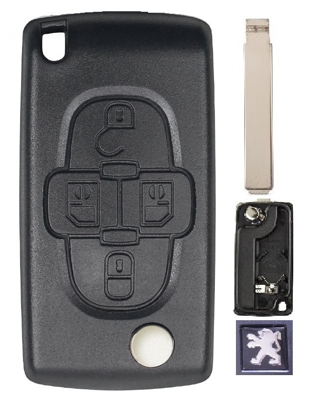 Корпус выкидного ключа PEUGEOT 4 кнопки CIT-1P VA2, бат.на корпусе CE0536, с лого