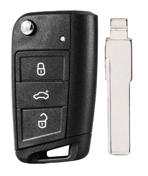 Корпус выкидного ключа SKODA MQB 3 кнопки HU-HAA HU66, с лого