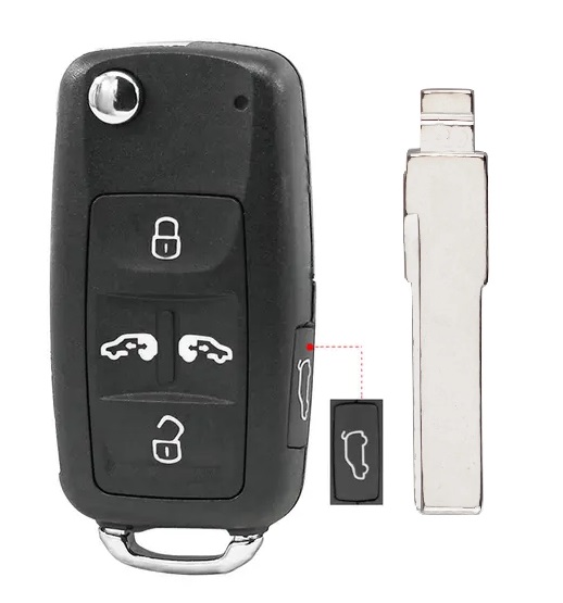 Корпус выкидного ключа VOLKSWAGEN 4+1 кнопки HU-HAA HU66, с лого